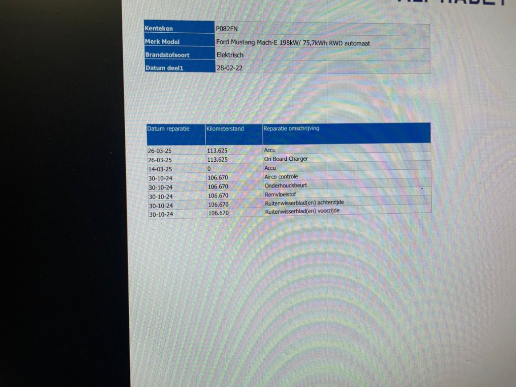 Leuk dat je kijkt naar onze auto! Deze auto is van de eerste eigenaar, de historie is compleet en is altijd netjes onderhouden. Let op, de auto heeft een netto meeneemprijs van € 21.845,-. Voor de full-serviceprijs (optioneel) betaal je € 22.900,- (nieuwe APK, volledige BOVAG garantie, onderhoudsbeurt en een volledige was- en poetsbeurt). Heb je geen inruil? Dan krijg je van ons €500,- korting op de full serviceprijs. Deze auto is net nieuw binnen, wat betekent dat hij nog niet netjes schoon is gemaakt. Uiteraard wordt hij nog netjes schoongemaakt.Te koop aangeboden: deze prachtige rode FORD MUSTANG MACH-E RWD 75 kWh uit 2022. Met zijn SUV carrosserie en automatische transmissie biedt deze auto zowel comfort als kracht. De kilometerstand van 125227 wordt gegarandeerd door BOVAG, dus u kunt met een gerust hart de weg op. Deze FORD MUSTANG MACH-E is voorzien van diverse luxe accessoires die het rijden nog aangenamer maken. Zo zijn de LED-koplampen niet alleen stijlvol, maar zorgen ze ook voor uitstekend zicht op de weg. De lederen bekleding voegt een vleugje luxe toe aan het interieur, terwijl het panorama dak zorgt voor een geweldig uitzicht. Met park control voor en achter, achteruitrijcamera en Apple CarPlay is inparkeren een fluitje van een cent. Daarnaast zorgen de automatische airconditioning, stuur- en stoelverwarming voor een aangename rijervaring. De radio DAB zorgt voor kristalhelder geluid, terwijl de Apple CarPlay voor naadloze connectiviteit met uw smartphone zorgt. De FORD MUSTANG MACH-E is 100% dealeronderhouden, waardoor u verzekerd bent van een auto in topconditie. Het panorama dak en de achteruitrijcamera dragen bij aan het rijgemak, terwijl de lederen bekleding het interieur een luxe uitstraling geeft. U zult zeker genieten van het comfort en de prestaties van deze auto. Wacht niet langer en maak snel een afspraak om deze FORD MUSTANG MACH-E RWD 75 kWh zelf te ervaren. Neem contact met ons op voor meer informatie of om direct een proefrit te plannen.