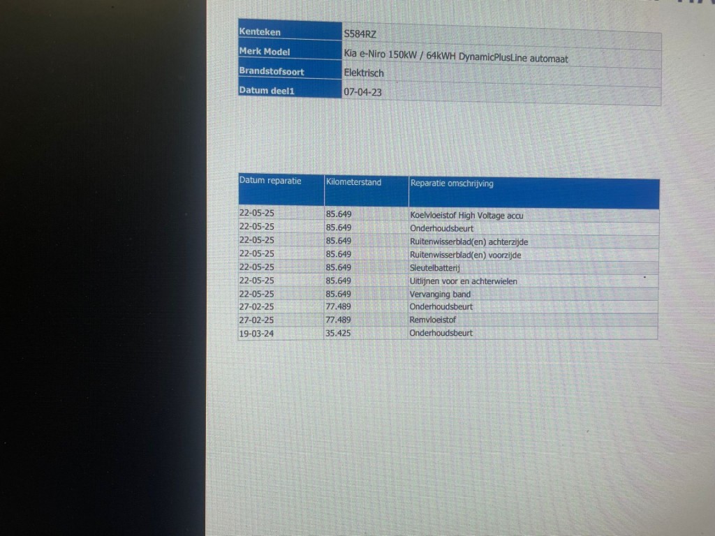 Leuk dat je kijkt naar onze auto! Deze auto is van de eerste eigenaar, de historie is compleet en is altijd netjes onderhouden. Let op, de auto heeft een netto meeneemprijs van € 24.645,-. Voor de full-serviceprijs (optioneel) betaal je € 25.650,- (nieuwe APK, volledige BOVAG garantie, onderhoudsbeurt en een volledige was- en poetsbeurt). Heb je geen inruil? Dan krijg je van ons €500,- korting op de full serviceprijs. Deze auto is net nieuw binnen, wat betekent dat hij nog niet netjes schoon is gemaakt. Uiteraard wordt hij nog netjes schoongemaakt.Bent u op zoek naar een ruime, comfortabele en milieuvriendelijke SUV? Dan is deze rode KIA NIRO EV DynamicPlusLine 64.8 kWh uit 2023 de perfecte keuze voor u! Met zijn automatische transmissie en 125256 kilometer op de teller is dit een betrouwbare en moderne auto waar u nog jarenlang van kunt genieten. Deze KIA NIRO EV is voorzien van talloze luxe accessoires die het rijcomfort naar een hoger niveau tillen. Zo geniet u van stoelverwarming voor, stuurverwarming en lederen bekleding voor een luxe uitstraling en extra comfort. Daarnaast beschikt deze auto over radio DAB, LED-koplampen, park control voor en achter, een schuifdak van staal, Apple CarPlay en een achteruitrijcamera voor extra gemak en veiligheid. Daarnaast heeft de auto airconditioning die automatisch wordt geregeld, wat zorgt voor een aangename temperatuur in elk seizoen. Deze KIA NIRO EV is 100% dealeronderhouden en heeft nog garantie via BOVAG, waardoor u verzekerd bent van kwaliteit en zekerheid. Met zijn moderne technologieën en comfortabele accessoires is dit een auto die voldoet aan al uw wensen en eisen. De rode kleur van de carrosserie maakt deze auto tot een echte eyecatcher op de weg, terwijl de zuinige elektrische motor bijdraagt aan een schonere en duurzamere wereld. Met zijn ruime interieur en praktische indeling is deze KIA NIRO EV de ideale gezinsauto, maar ook voor zakelijk gebruik is deze auto uitermate geschikt. Kortom, deze KIA NIRO EV DynamicPlusLine 64.8 kWh combineert comfort, luxe, betrouwbaarheid en duurzaamheid in één prachtig vormgegeven auto. Bent u geïnteresseerd in deze unieke kans om in het bezit te komen van een moderne en milieubewuste auto? Neem dan snel contact met ons op voor meer informatie of een proefrit. Met deze KIA NIRO EV haalt u gegarandeerd een toekomstgerichte en stijlvolle auto in huis!